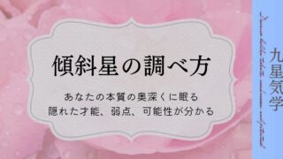 本命星と月命星から導き出されます本命星 → 月命星 → 傾斜星 → 同会星今回は 傾斜星 を出してみましょう傾斜星を出すと、同会星も同時に分かります傾斜星とは本命星と月命星から導き出される星になります【傾斜星】潜在的能力や可能性を示す本命の...