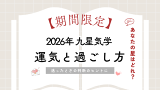 保存版・テキスト 2026年 九星気学|9つの星で見る運気の流れと具体的な過ごし方(保存版) 2026年はどんな年?全体の流れを解説なんとなくうまくいかない、進みにくい——そんな感覚を持つ方が増えるかもしれません。2026年は、一白水星が中宮に入る年です。2026年の運勢|表に見えない部分がテーマ2026年は、一白水星中宮になる年世... 2026.02.04 保存版・テキスト
