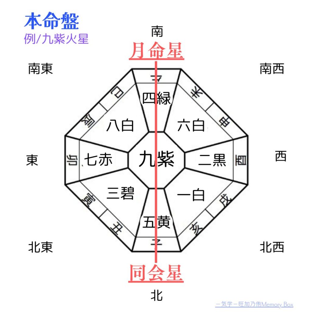 この九紫火星の本命盤に月命星のある場所から一本の線
