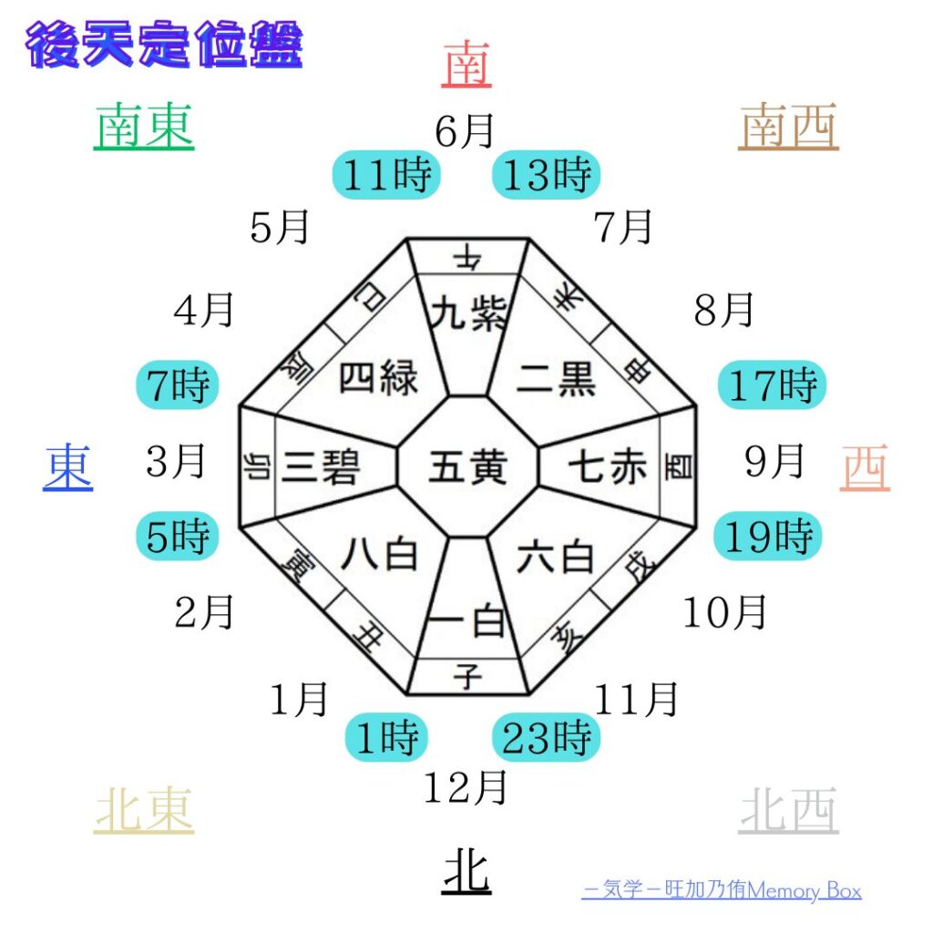 それは、後天定位盤を見て、九紫さんの場合は五黄土星が乗っている場所は北の一白水星の位置になります。